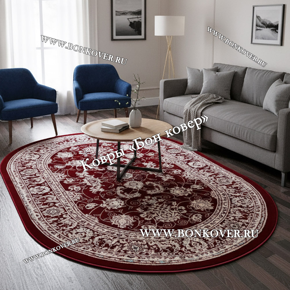 Турецкий Ковер Для гостиной дизайн 80 красный Овал станет шикарным преображением жилого помещения, подчеркивая высокий статус хозяина.