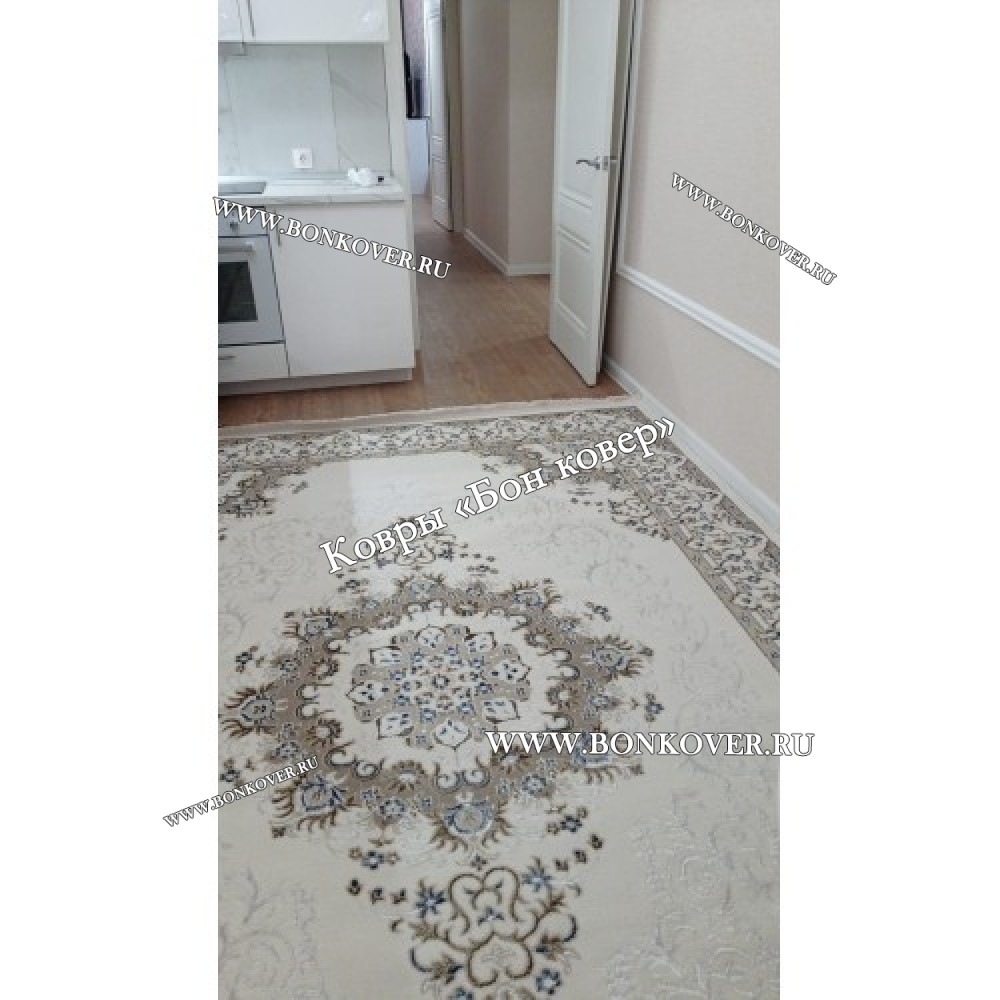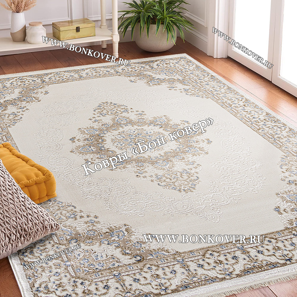 Красивый Турецкий Ковер Для Гостиной Медальон Дизайн 04 наполняет интерьер комнаты теплом и уютом, гармонично сочетает в себе изящество и стиль. Он соткан из экологически чистого сырья, комфортный и долговечный.